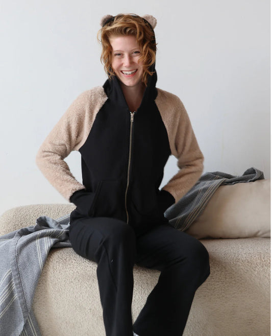 Long Sleeve Croppish Tee in Solid Black Rib Knit