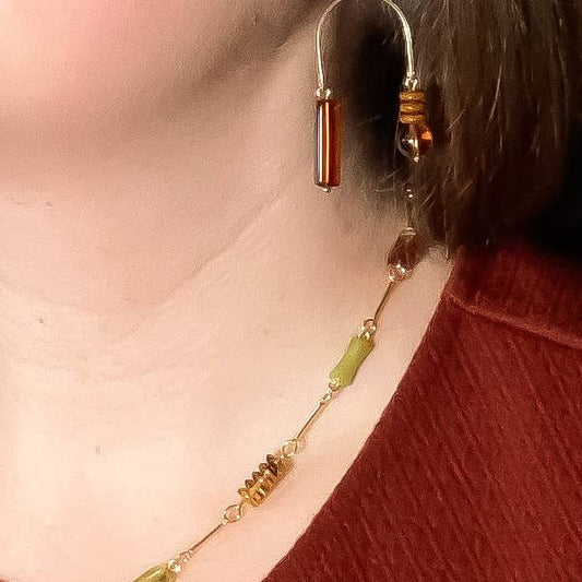 Balance Necklace - Malachite, Lapis, Pyrite, Vintage Glass