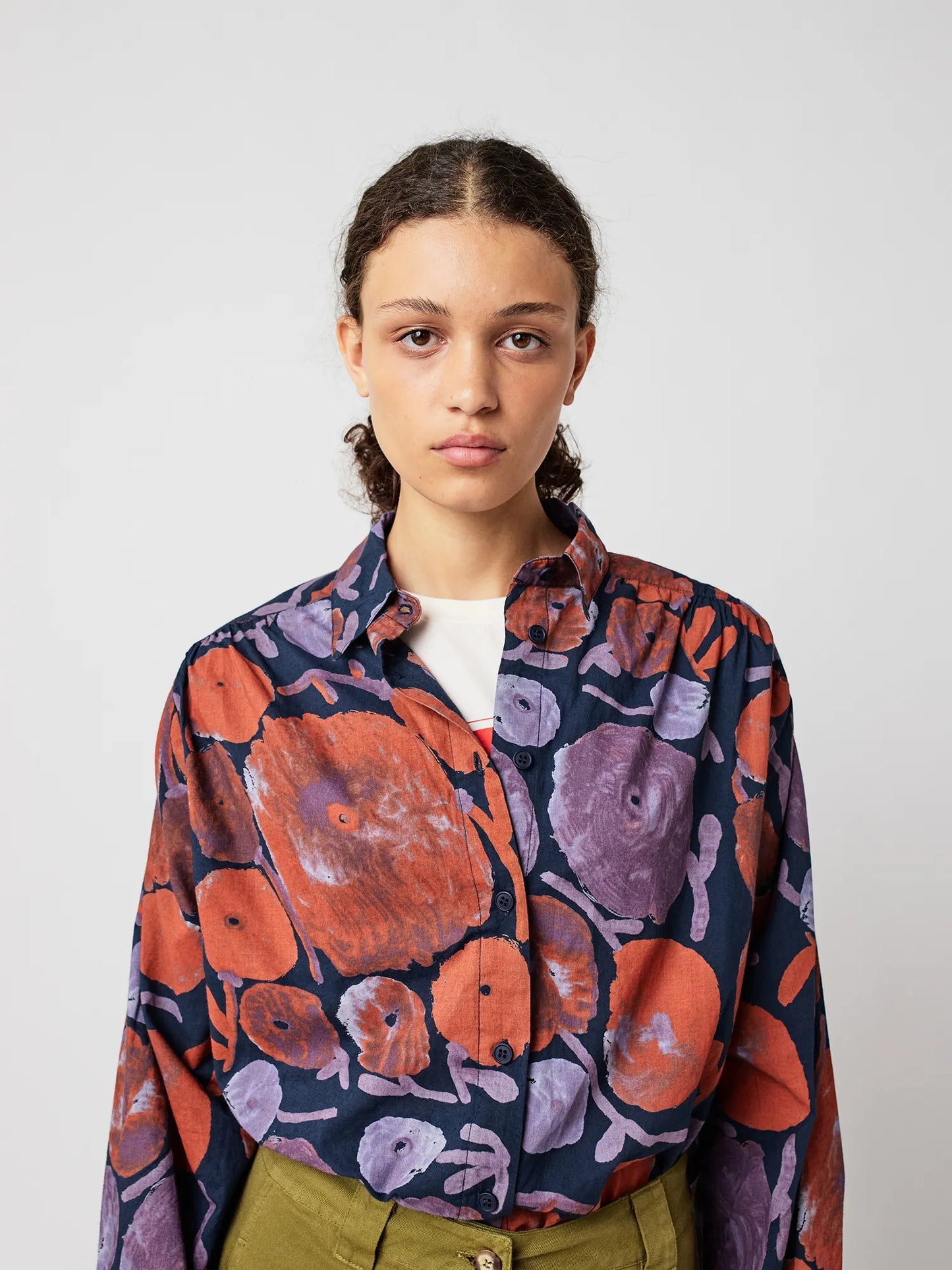 Navy blue shirt. Designed with slightly loose fit, non stretchy fabric and lightweight fabric. Fits true to size, take your normal size.