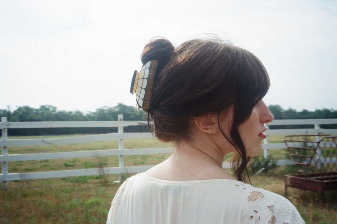 Travel back in time to your grandma’s living room with the Geometric Lamp Claw, a nostalgic and cute claw clip inspired by vintage stained glass lamp design. This conversation piece is sure to light up any outfit.