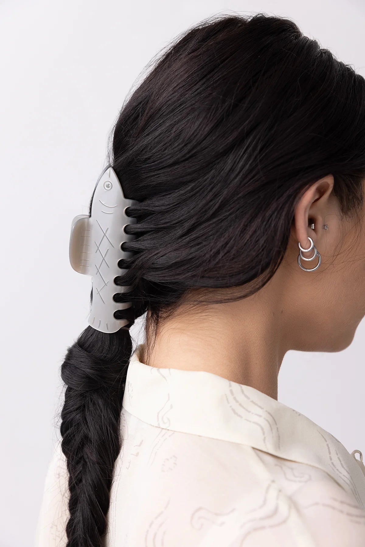 Featuring a claw that gently and securely wraps around and holds lots of hair, this sweet silvery fish brings just the right amount of sparkle.
