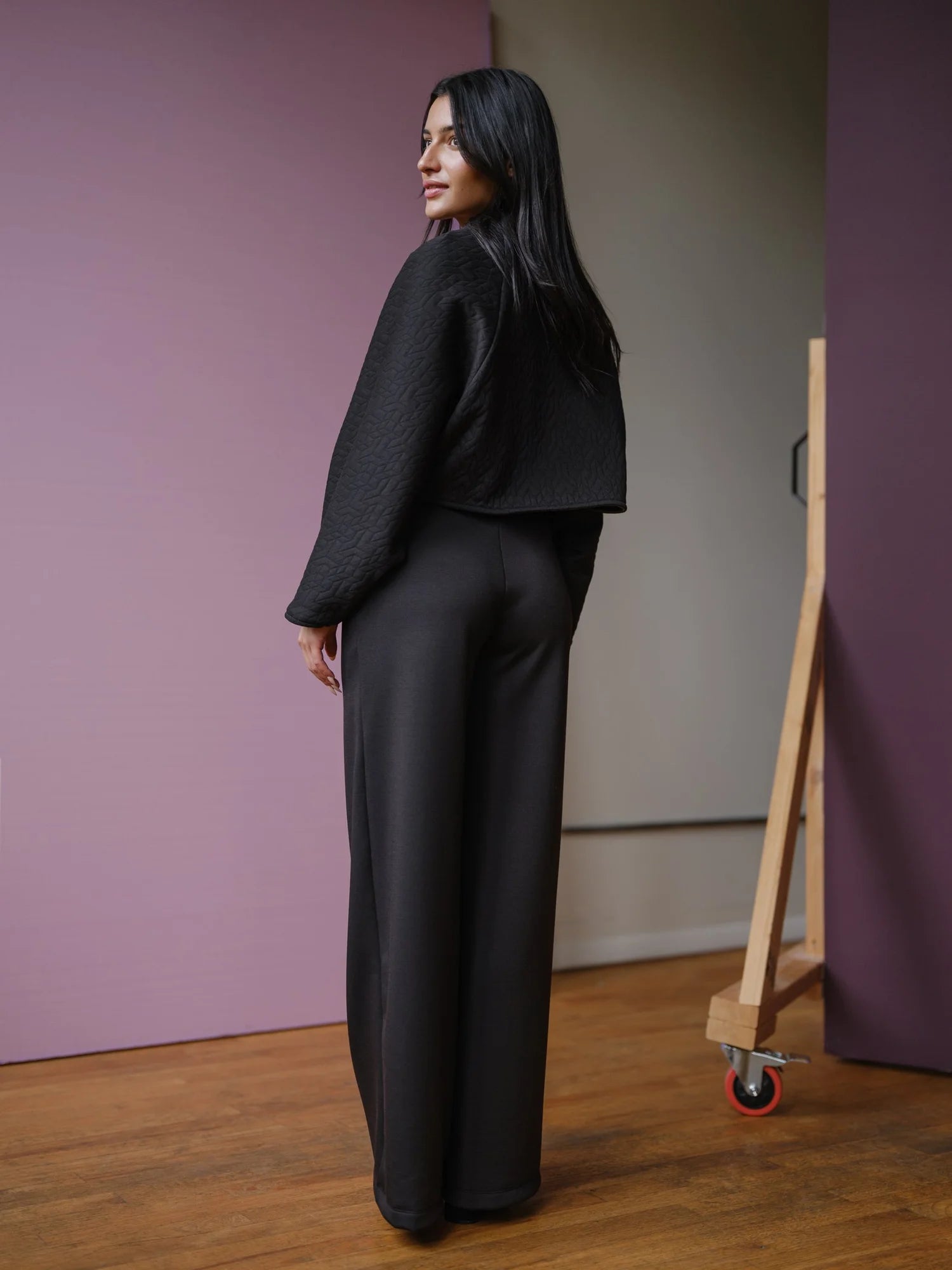 The new Quilted Bolero features a black geometric quilted design. Wear this piece over everything- fitted tees, bodysuits, button down shirts, and bonus- over your evening wear dresses for special occasions.