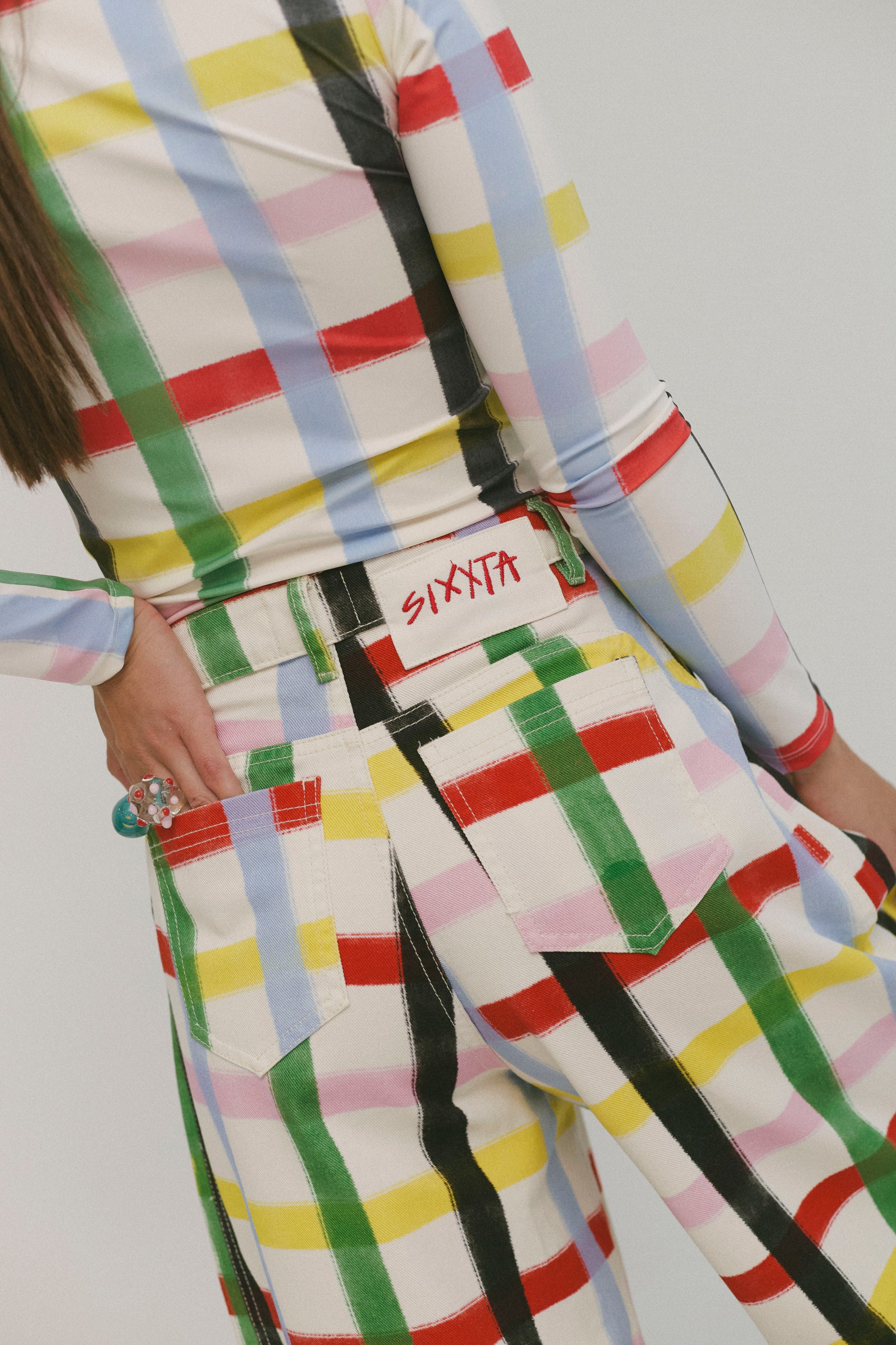 Bring the party vibes. Wide leg cotton balloon jeans. We love these with the matching top, jacket, or just with a basic white tee.